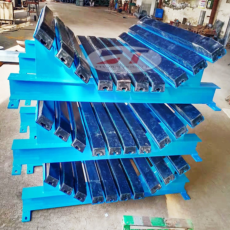 4、緩沖條的表面材料為UHMW-PE,表面光滑且耐磨,可減少摩擦阻力,延長(zhǎng)使用壽命。橡膠可有效吸收物料對(duì)皮帶的沖擊力。