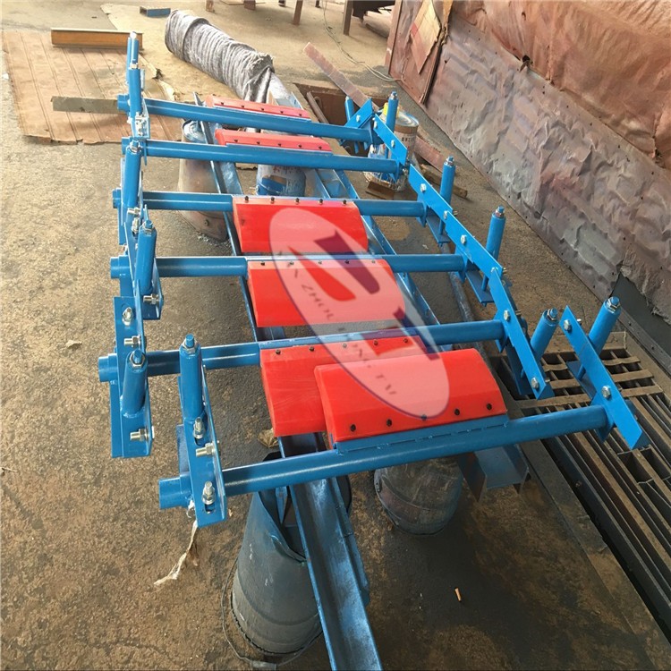 刮刀采用聚氨酯復(fù)合材料,利用模具一體加硫成形,刮刀面平整,直線度好,低摩擦、高耐磨、高強(qiáng)度,具有穩(wěn)定的刮料效果。可有效清除殘留皮帶上之細(xì)粒、濕粘物料。預(yù)壓式調(diào)壓器確保刮刀與皮帶的穩(wěn)定接觸壓力。刮刀面由多塊窄幅聚氨脂刮板組成,具有空形緩沖孔,對(duì)各種皮帶都有良好跟隨性。