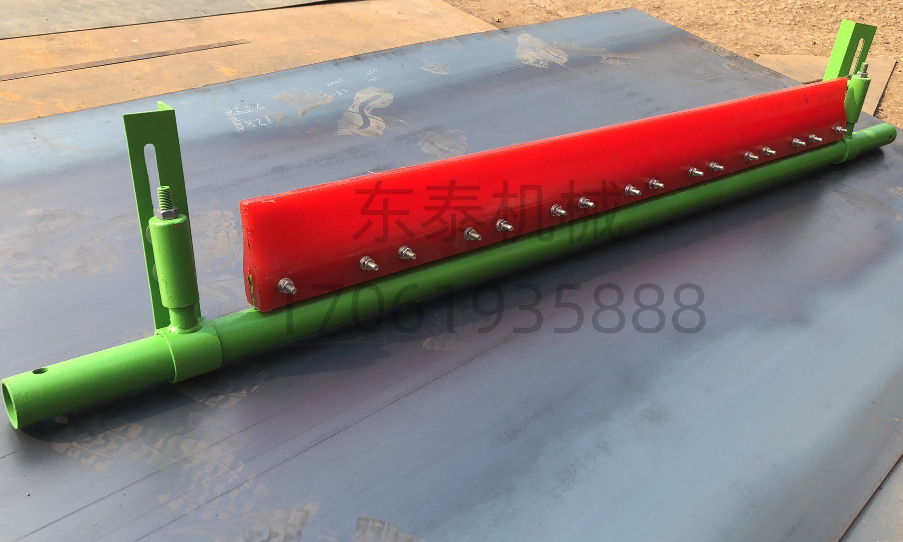 刮刀采用聚氨酯復(fù)合材料,利用模具一體加硫成形,刮刀面平整,直線度好,低摩擦、高耐磨、高強(qiáng)度,具有穩(wěn)定的刮料效果??捎行宄龤埩羝现?xì)粒、濕粘物料。預(yù)壓式調(diào)壓器確保刮刀與皮帶的穩(wěn)定接觸壓力。刮刀面由多塊窄幅聚氨脂刮板組成,具有空形緩沖孔,對(duì)各種皮帶都有良好跟隨性。