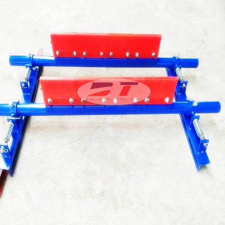 清掃器在輸送機(jī)上有著不可忽視的作用。在運(yùn)行中,如果人為的清除機(jī)尾滾筒附著物,往往容易發(fā)生嚴(yán)重人身傷亡事故。而清掃器有及時(shí)、方便地、快速的清除滾筒附著物的特點(diǎn)。