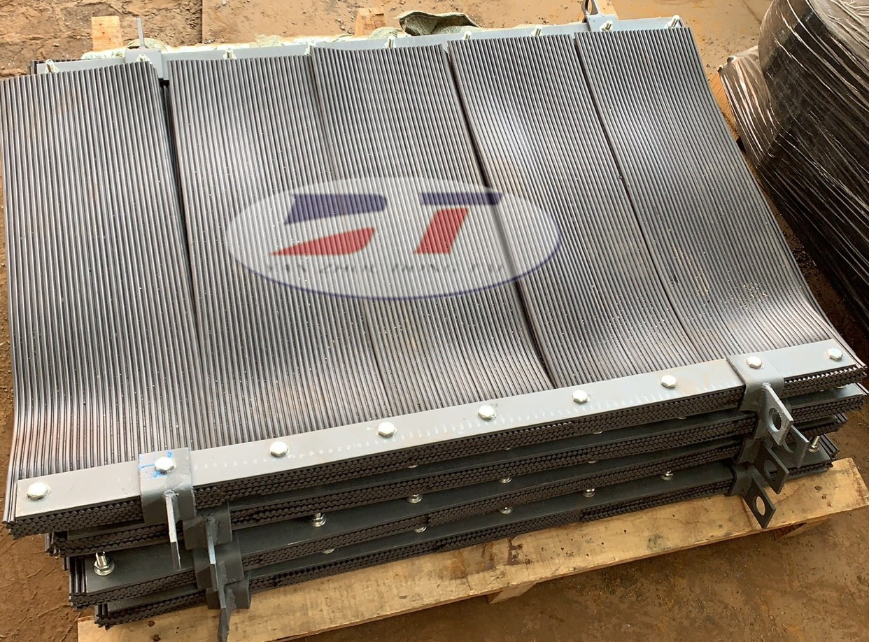 擋塵簾對于風(fēng)中的浮游煤塵具有很好的阻擋、過濾作用,含塵風(fēng)經(jīng)過擋塵簾后,其降塵效果達(dá)到 6875。與降塵噴霧相比,擋塵簾的降塵效果非常明顯,擋塵簾的降塵效果比單獨使用降塵噴霧 20以上。 擋塵簾對通風(fēng)沒有影響。擋塵簾既可以在回采工作面回風(fēng)中使用,也可以在掘進工作面回風(fēng)中使用,還可以的掘進工作面獨巷內(nèi)使用,它可以對由于放炮、裝載等工序產(chǎn)生的煤塵進行攔、撲滅,只是對運輸略有影響。碎煤機出口產(chǎn)生粉塵的主要原因是碎煤機轉(zhuǎn)子鼓風(fēng)效應(yīng)和落煤筒落差大產(chǎn)生的誘導(dǎo)風(fēng),其次是尾部緩沖托輥緩沖變形導(dǎo)料槽產(chǎn)生的氣隙,碎煤機和煤流產(chǎn)生的誘導(dǎo)風(fēng)使導(dǎo)料槽正壓。若僅簡單地對導(dǎo)料槽進行封堵,勢必造成導(dǎo)料槽。正壓進一步增大,從而從某一簿弱環(huán)節(jié)噴出。若僅考慮在導(dǎo)料槽出口加裝水噴霧,微小顆粒的粉塵能得到抑制,但誘導(dǎo)風(fēng)夾帶的較大顆粒無法消除。因此,在考慮粉塵治理方案時使用擋塵簾。