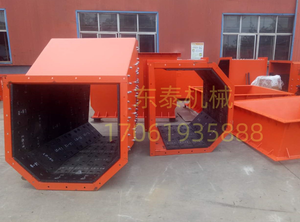 在輸送帶的下面,將原槽型托輥組更換為短槽型托輥組,用來支撐輸送帶的物料重力部位。輸送帶的兩邊非重力部位,用帶有減摩耐磨材料的底板來支撐,即支撐輸送膠帶,又可起密封作用,此支撐底板同側(cè)板連接在一起,側(cè)板同頂板連接在一起,共同組成殼式密封結(jié)構(gòu)。導(dǎo)料槽的底邊寬度為2/3-1/2帶寬導(dǎo)料槽的截面形狀分為:矩形和弧形兩種。導(dǎo)料槽設(shè)計(jì)分為后擋板、槽體、前簾三個(gè)部分設(shè)計(jì)。裝于帶式輸送機(jī)的受料處約束物料不往外撒落導(dǎo)料槽:可使從漏斗落下的物料在達(dá)到帶速之前集中到輸送帶的中部。導(dǎo)料槽的底邊寬度為2/3-1/2帶寬導(dǎo)料槽的截面形狀分為:矩形和喇叭形兩種。導(dǎo)料槽設(shè)計(jì)分為后擋板、槽體、前簾三個(gè)部分設(shè)計(jì)。