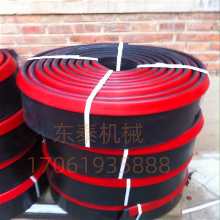 4、皮帶機防溢裙板密封效果:防溢裙板采用直板+裙邊雙層密封一體化結(jié)構(gòu),直板緊貼導(dǎo)料槽側(cè)幫,底部與皮帶接觸,防止物料外溢;裙邊外翻起,可在一定角度內(nèi)旋轉(zhuǎn),靠橡膠板彈力,自動跟蹤皮帶,始終與皮帶保持緊密接觸,密封性能優(yōu)異。裙邊主體采用一次性一體熱硫化方式制成,結(jié)構(gòu)緊湊有效,結(jié)實耐用。防溢裙板安裝方法編輯多護防溢橡膠裙邊的安裝方式特別方便,只需確認安裝位置后,將專用固定槽采用焊接,鉚接,自攻螺絲等任一方式固定在落料槽外邊,再將多護防溢裙邊背面的T型膠塊滑入固定槽即可。