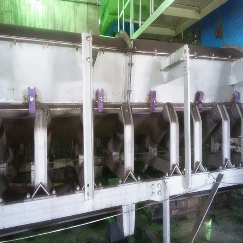 1.導(dǎo)料槽(喇叭口),頂部采用圓弧型結(jié)構(gòu),便于清掃頂部積塵.由于導(dǎo)煤槽斷面加大,降低了誘導(dǎo)風(fēng)速,具有降塵功能.
