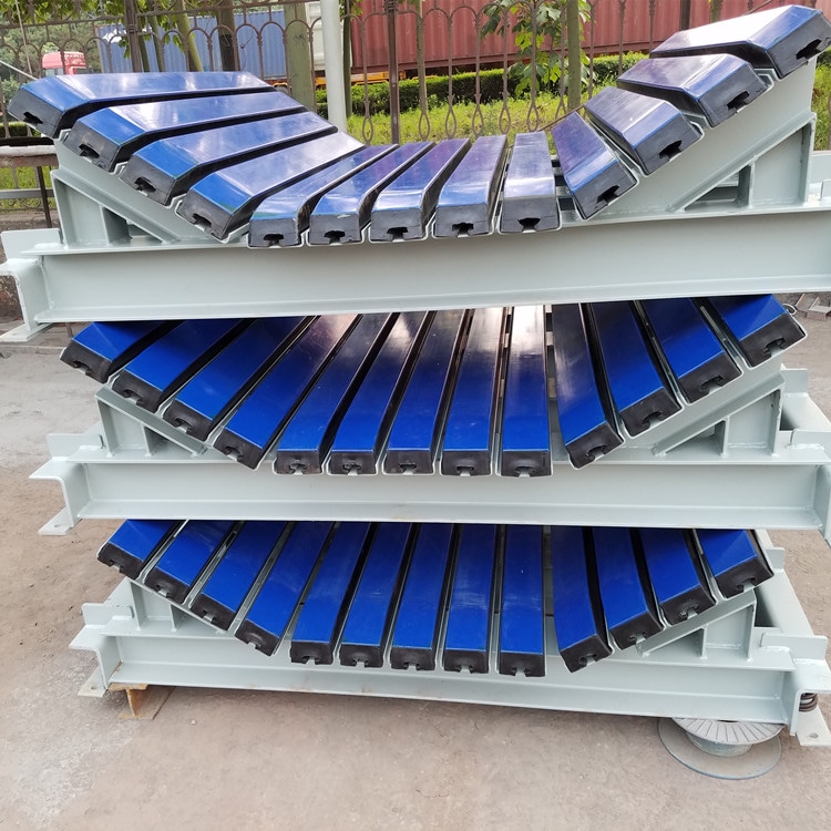 4、緩沖條的表面材料為UHMW-PE,表面光滑且耐磨,可減少摩擦阻力,延長(zhǎng)使用壽命。橡膠可有效吸收物料對(duì)皮帶的沖擊力。